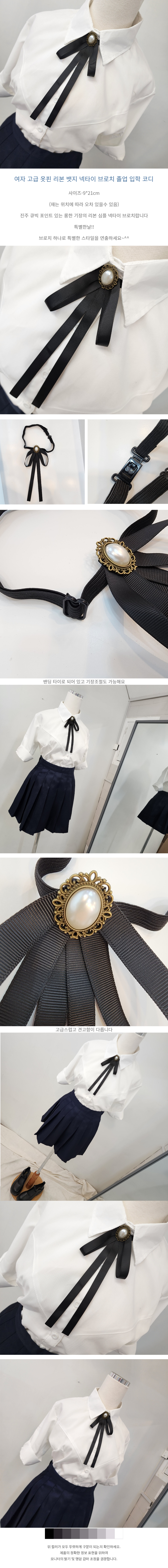 검정 두줄 리본 넥타이 브로치 졸업 입학 학예회
