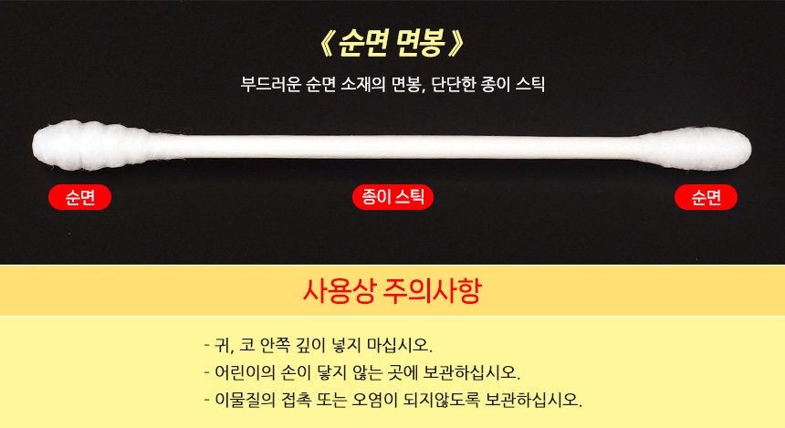 귀파개 순면 일회용 면봉 위생용품 귀청소 종이면봉