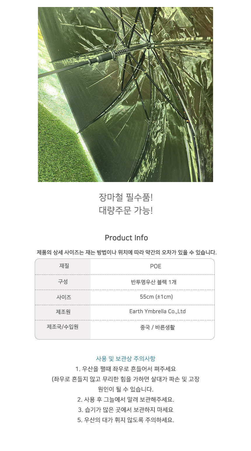 투명우산 (블랙) 무료배송 6830 / 저가 자동 장마철 여행 등산 캠핑 낚시 대량주문가능